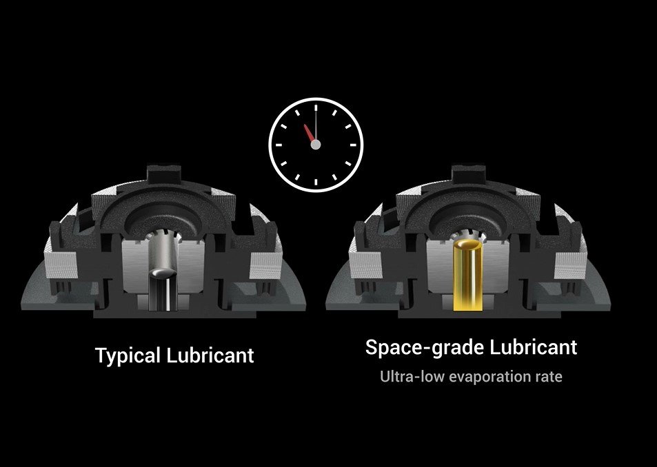 Kết hợp với dầu bôi trơn cao cấp thường được sử dụng trong các lĩnh vực hàng không vũ trụ, những vòng bi lót này cho độ ồn thấp hơn các mẫu vòng bi kép nhưng cho độ bền tương đương.