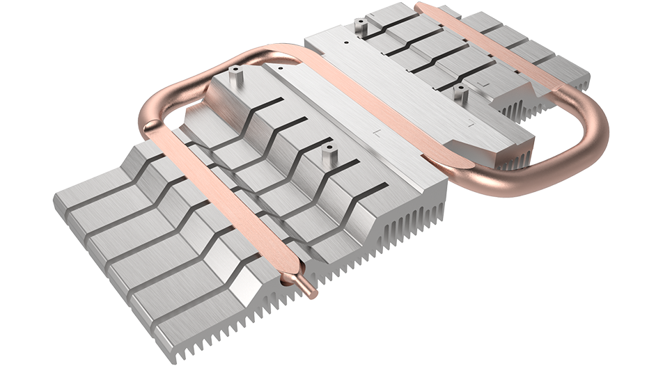 Các ống tản nhiệt bằng đồng tiếp xúc trực tiếp với khuôn đúc để tăng cường truyền nhiệt.