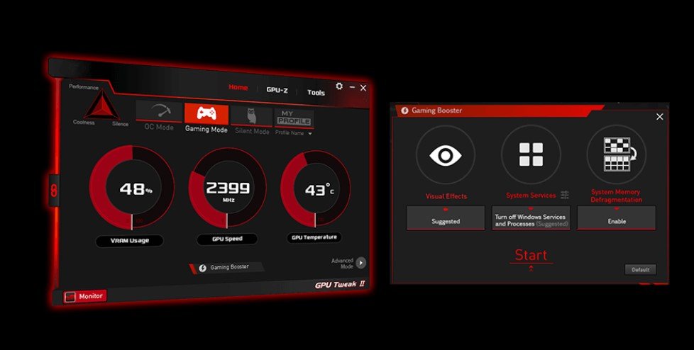 Tiện ích ASUS GPU Tweak II hỗ trợ điều chỉnh cạc đồ họa lên một đẳng cấp mới. Tiện ích này cho phép bạn tinh chỉnh các tham số quan trọng bao gồm các thiết lập xung lõi GPU, xung bộ nhớ và điện áp, cùng tùy chọn để theo dõi mọi thứ theo thời gian thực thông qua hiển thị trên màn hình có thể tùy biến được. Điều khiển quạt nâng cao cũng được trang bị cùng với nhiều tính năng để giúp bạn khai thác tối đa cạc đồ họa của bạn.