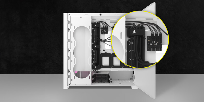 Case máy tính Corsair iCUE 5000D RGB Airflow True White định tuyến các dây cáp chính của bạn qua một kênh duy nhất, cùng với khoảng trống rộng 25mm phía sau bo mạch chủ để giúp case trông sạch sẽ gọn gàng hơn bao giờ hết.