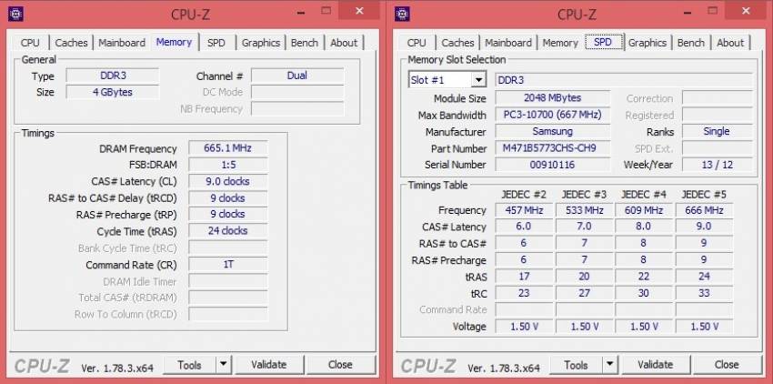 Cửa sổ hiển thị Tab Memory và Tab SPD
