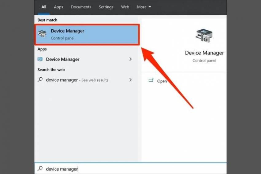 - Bước 1: Bạn cần nhập từ khóa Device manager ở khung tìm kiếm của phần start (biểu tượng kính lúp).